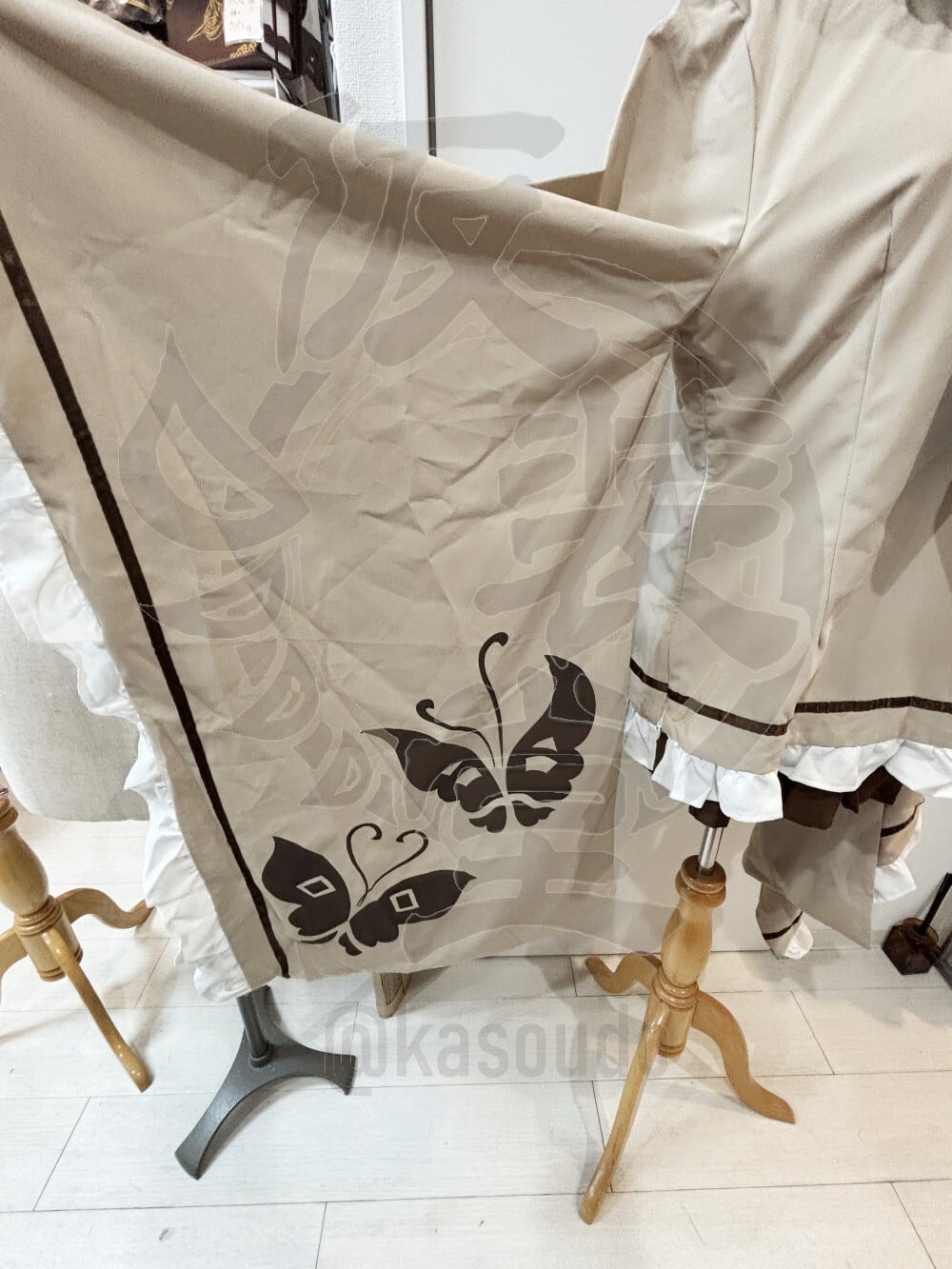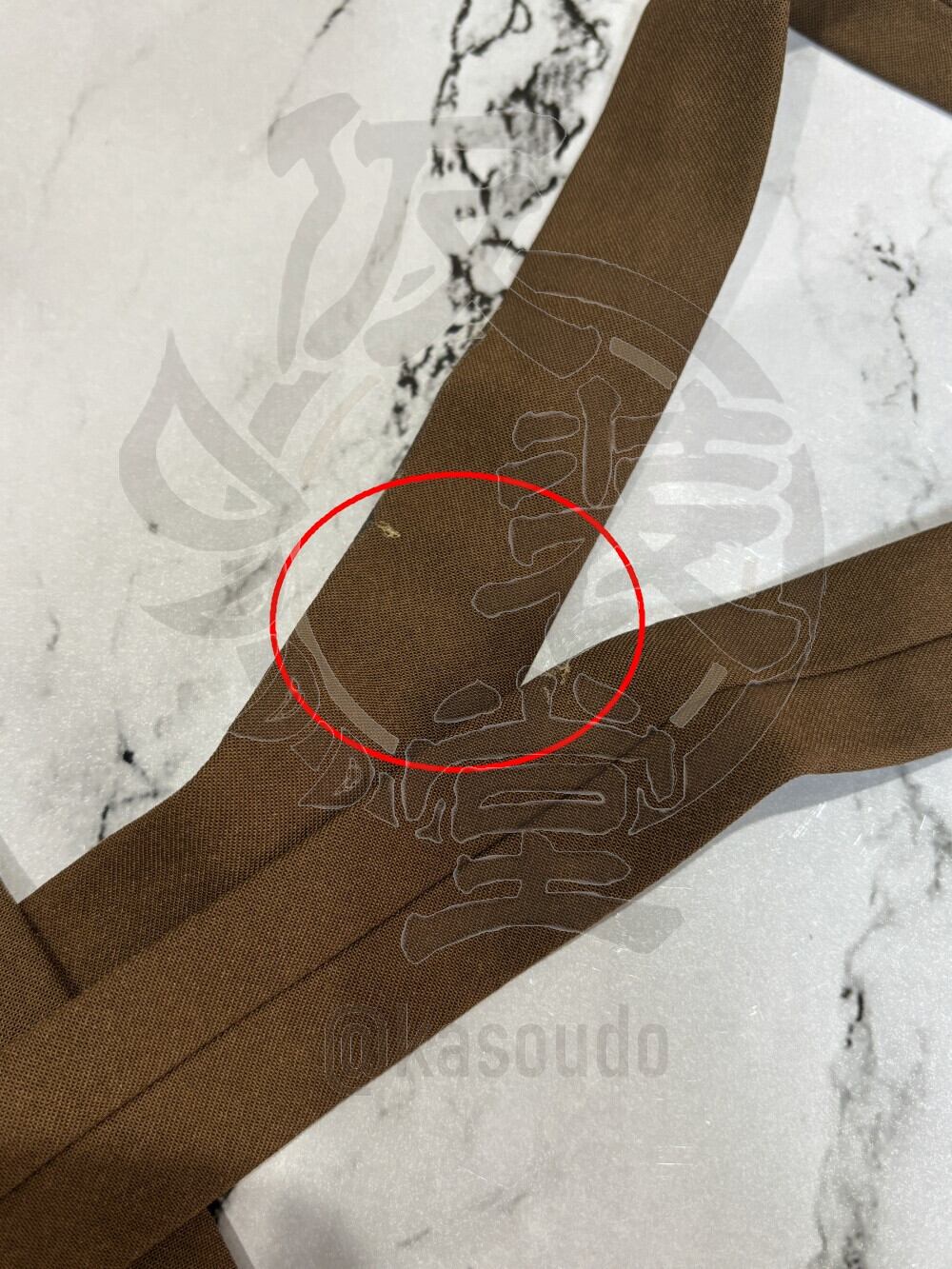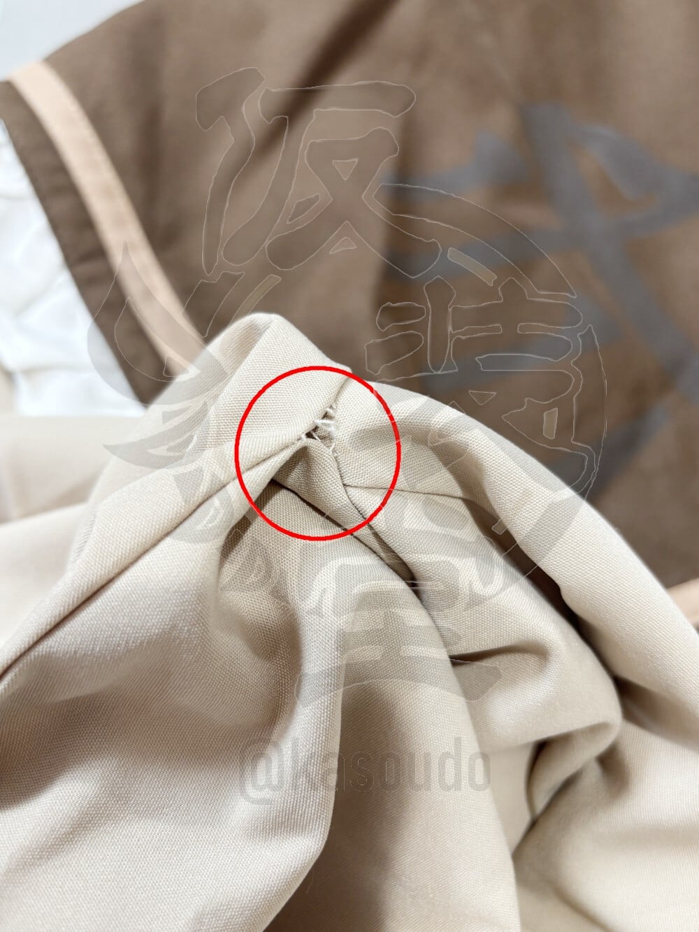 ⇒左わき下にほつれあり、襟元、袖のフリルに汚れの付着あり