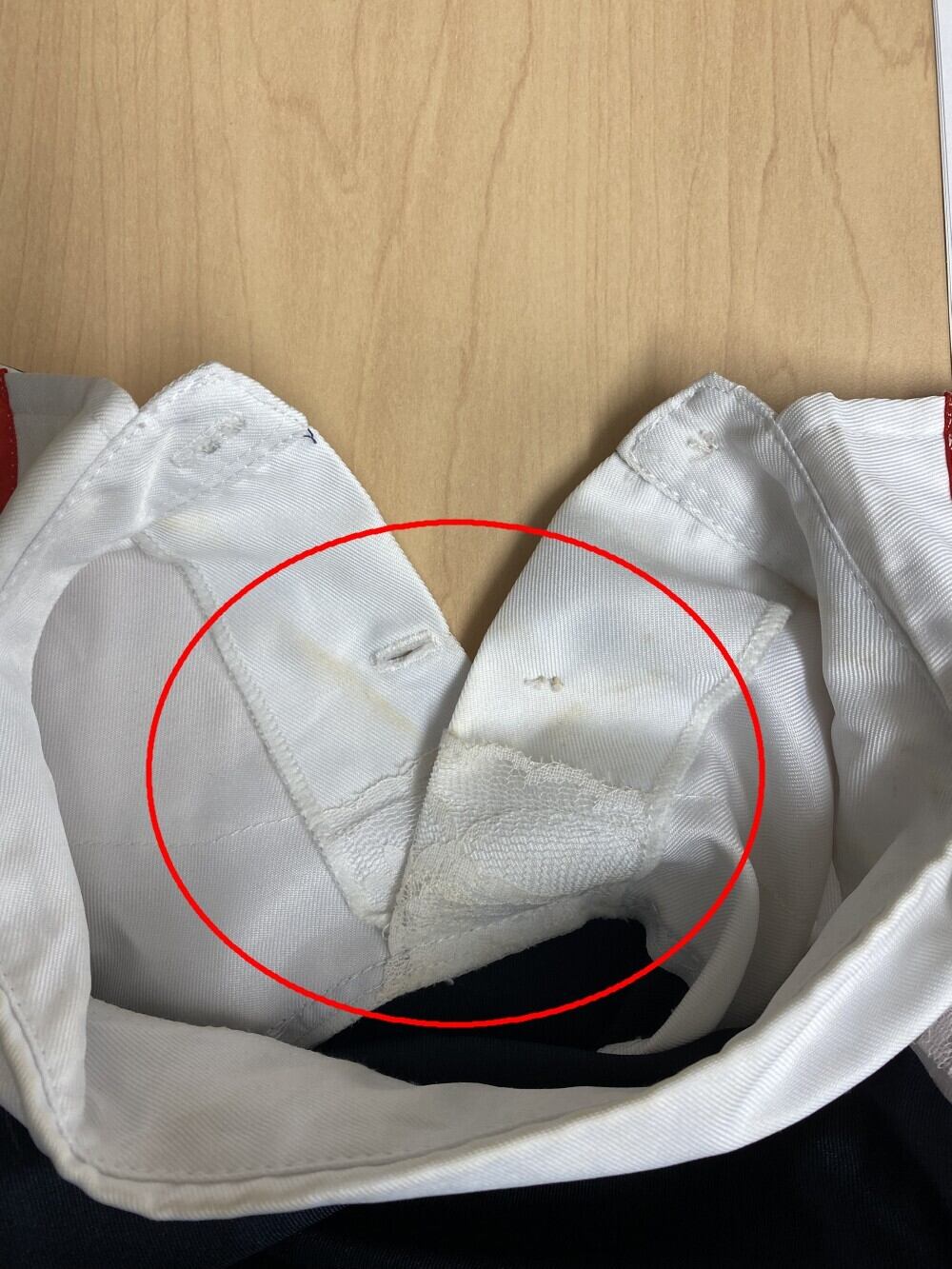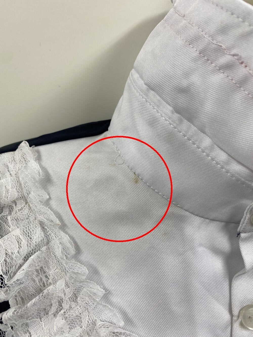 ⇒襟もとに汚れの付着あり