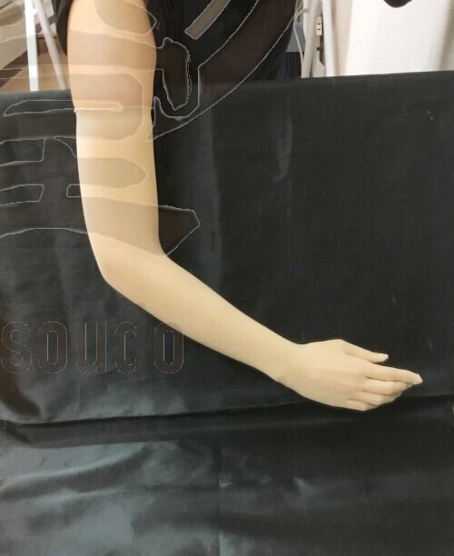 手の大きさ、腕の太さによってヒジ上まで伸びない場合があります。