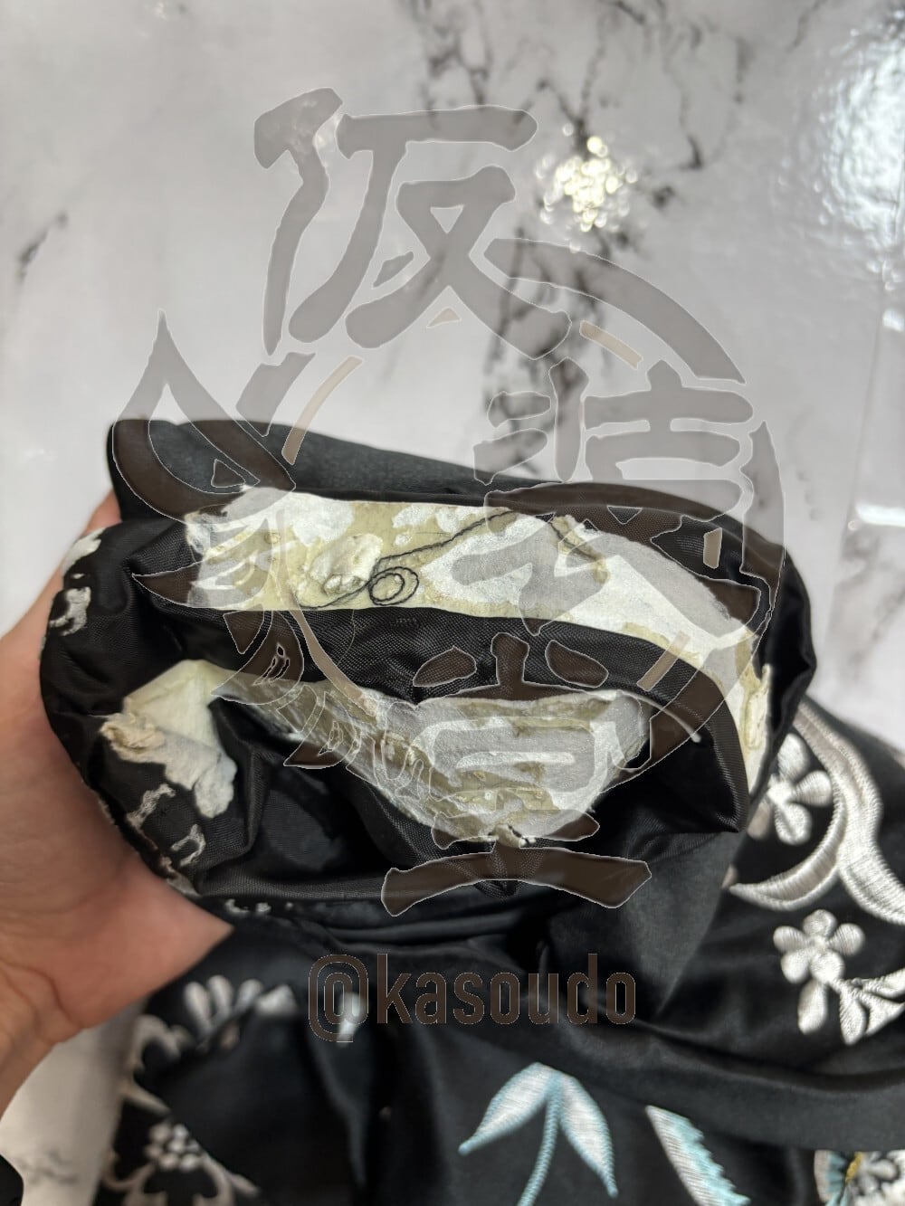 ⇒全体的に襟に赤い斑点状のシミ付着あり